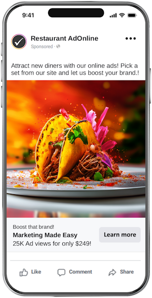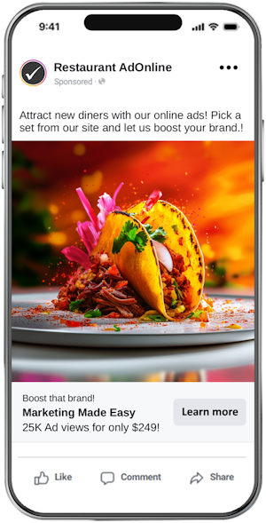 We'll display them on Facebook and Instagram, close to your restaurant.